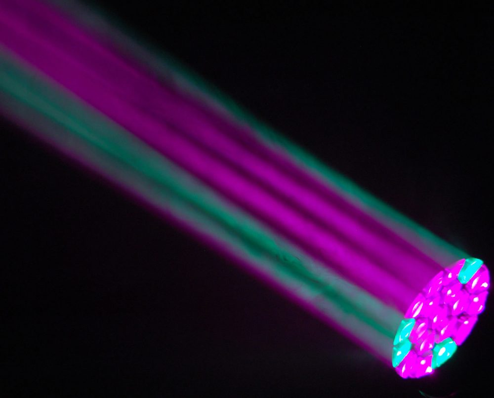 When the B-EYE beam is zoomed down to 4°, the “wash” light turns into a “beam” fixture. The B-EYE therefore becomes a surprising mid-air parallel effect light, capable of generating a pulsating beam of micro-rays, which may be controlled individually, each with its own colors and shades. All the parameters of each LED can be completely controlled.