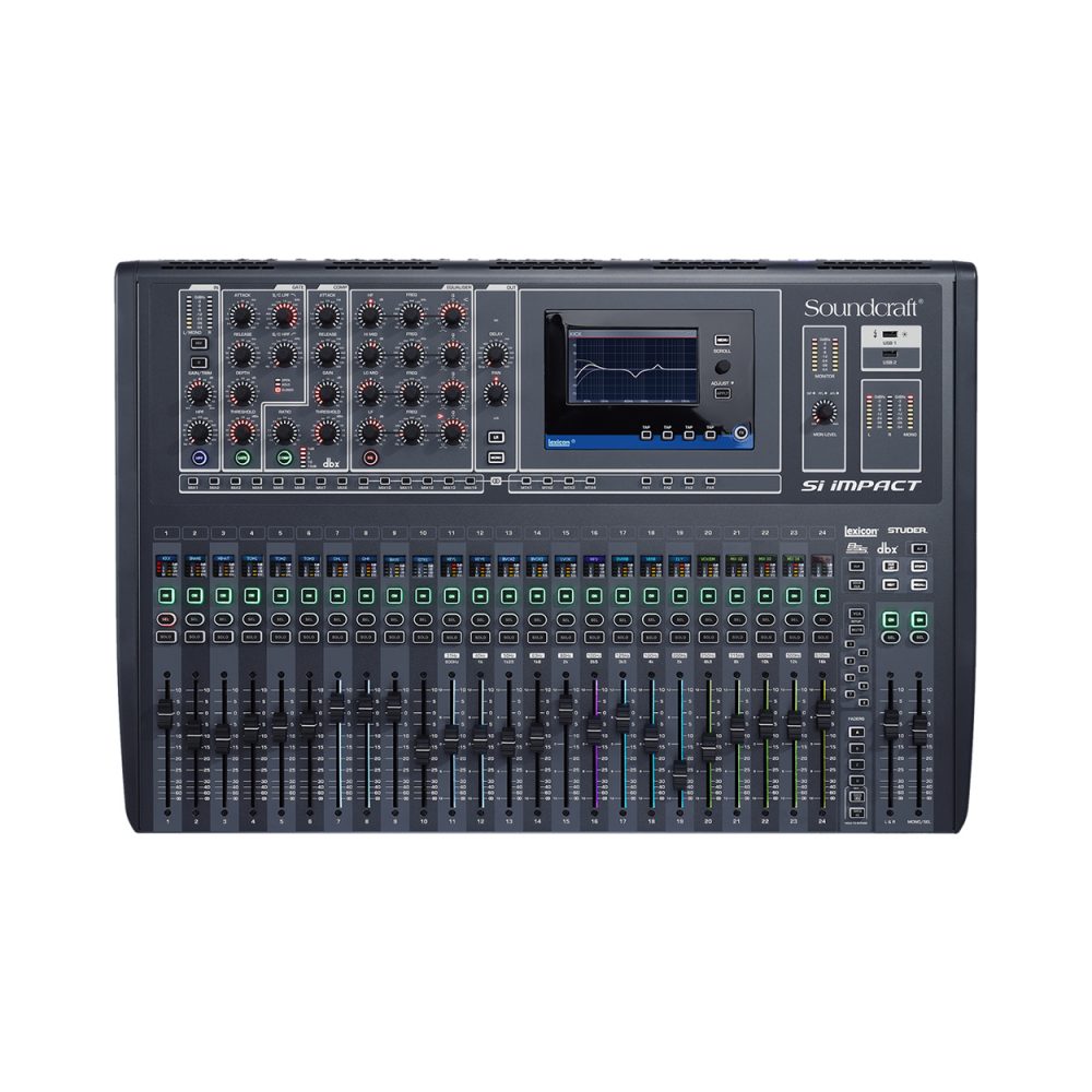 Drawing on over 40 years experience in live sound mixing, Si Impact brings the latest digital mix innovations together with the unrivalled sound quality of Soundcraft. Designed to be as simple as an analog mixer, but offer radical workflow enhancements such as the unique FaderGlow™ system, massive DSP power, and a pristine 32-in/32-out USB audio interface, Si Impact delivers digital live sound mixing and recording for those who refuse to compromise on audio quality.