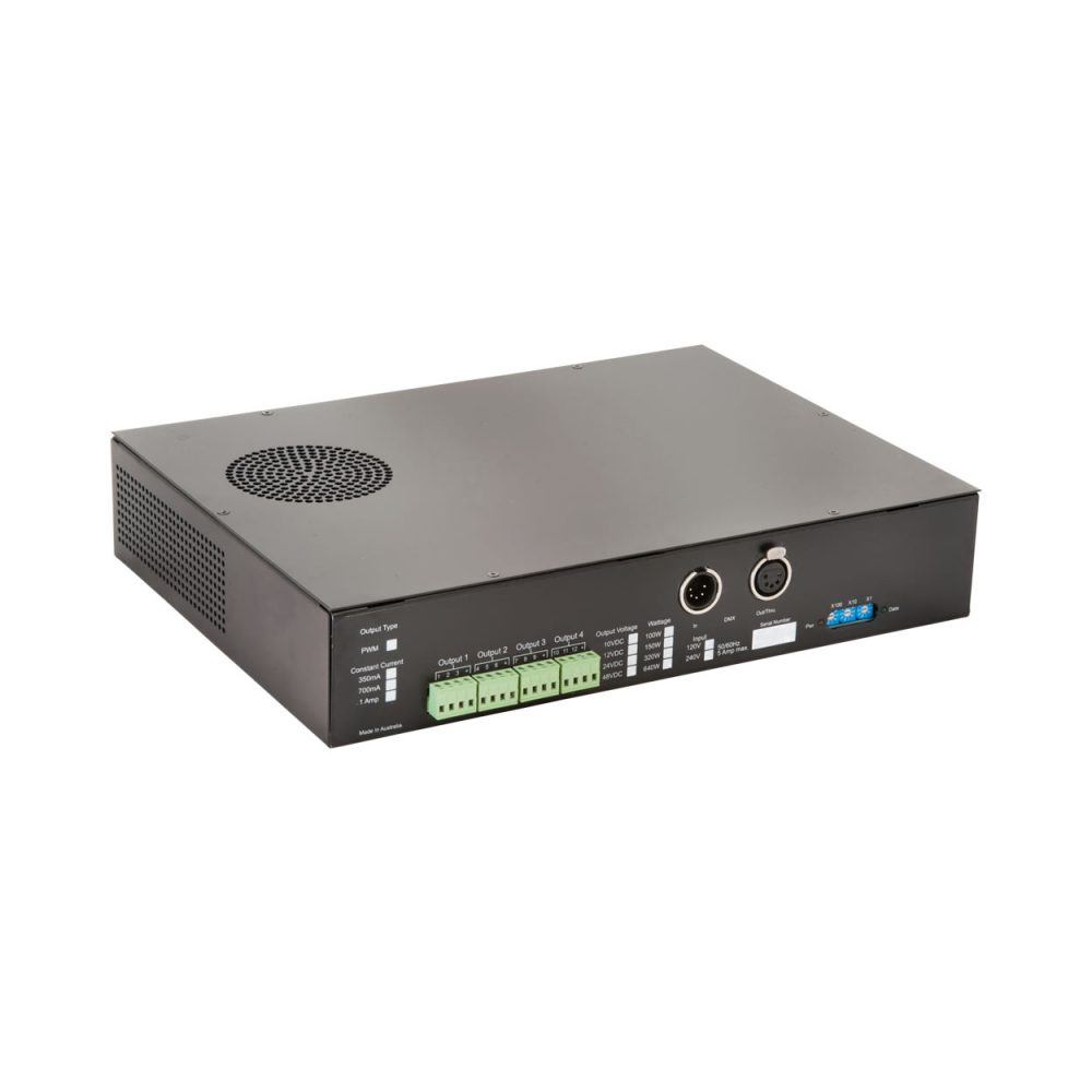 Control 12 is available in 2 versions, built in power supply or external power supply. New SpaceDim high resolution and high speed technology enables smooth and full-range dimming of LEDs down to zero, simulating traditional tungsten dimming curves. This enables a more natural effect, and is perfect for all applications including architectural, theatrical, film and TV work.